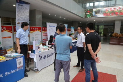 走进校园活动在南理工化工大楼一楼大厅举办,现场吸引了研究课题组和实验室众多师生。南试展台通过《产品目录》和生动的宣传画册对试剂、药辅等化学品的理化性质、使用方法、事故应急处置等知识进行介绍。在与师生互动交流过程中,服务人员还就化学品订货、包装样式、储存运输等问题做了详细解答,不时有人拿出手机关注“南京试剂”商城。