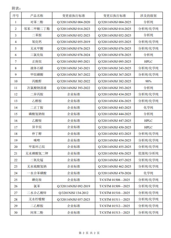 首页 > 新闻中心 > 企业公告 化学试剂产品质量标准变更告知函