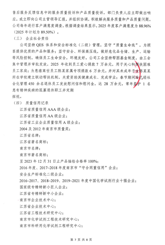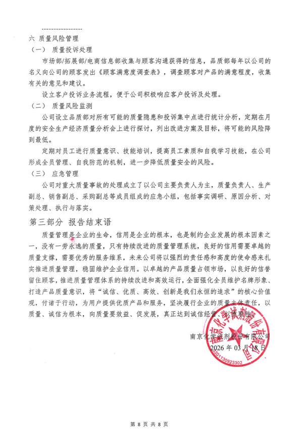 (三)报告的发布周期:南京化学试剂股份有限公司质量信用报告为年度报。